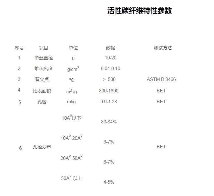 活性碳纖維(ACF)的特性及特性參數(shù)